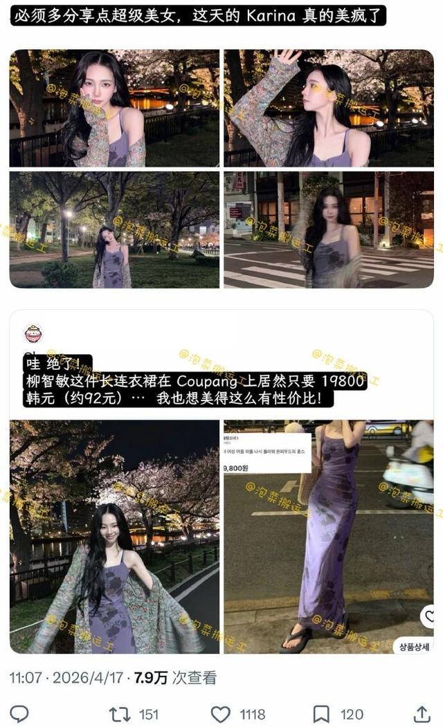 一张樱花写真让aespa成员柳智敏身上的裙子成了焦点。